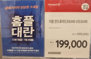 더함U553UHD 안드로이드 TV 가 인터넷 최저가도 40만원대인데 지금 홈플러스에서 199,000원에 판매 한다고 하네요. 집근처 홈플러스 꼭 한번 가보세요. 이건 나중에 되팔아도 남는장사 일거 같네요.