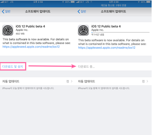 아이폰 사용하면서 와이파이 없는곳에서 업데이트 하는 방법입니다.